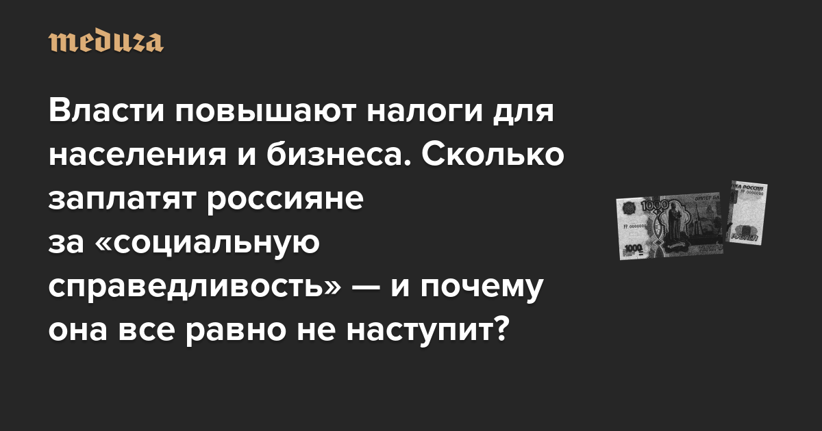 Власти повышают налоги для населения и бизнеса. Сколько заплатят россияне за «социальную справедливость» — и почему она все равно не наступит? И не потратят ли собранные триллионы на войну?