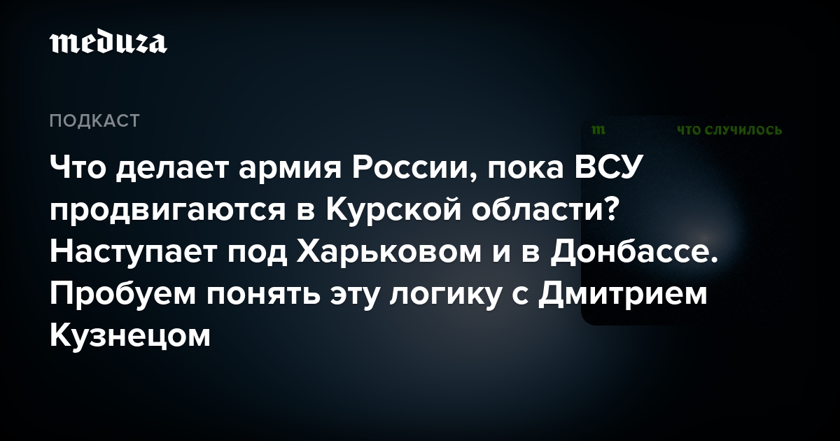 Как развивается операция ВСУ в Курской области? И что в это время делают основные российские силы? Обсуждаем с военным экспертом «Медузы» Дмитрием Кузнецом, эпизоды с которым выходят в подкасте «Что случилось» каждый четверг.