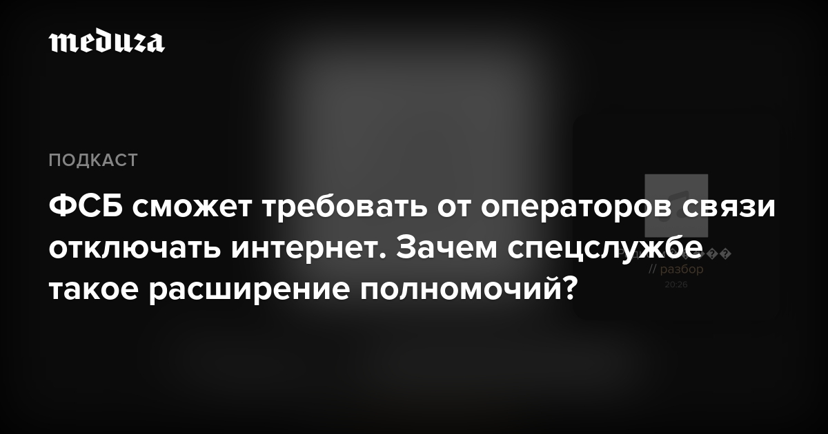 Зачем ФСБ расширяет полномочия? Отключения коснутся только мобильного интернета? Почему с операторов связи снимут ответственность за такие отключения? Аудиоверсия разбора. Прочитать карточки можно здесь.
