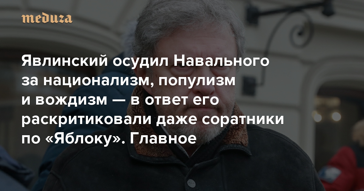 Явлинский осудил Навального за национализм, популизм и вождизм — в ответ его раскритиковали даже соратники по «Яблоку». Главное