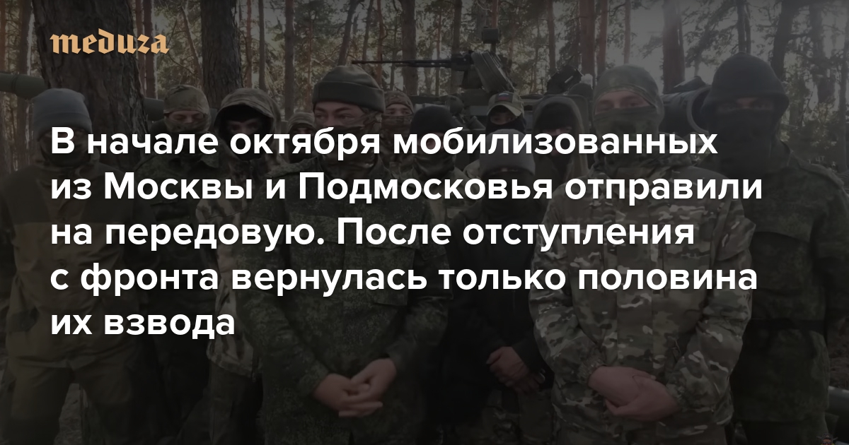В начале октября мобилизованных из Москвы и Подмосковья отправили на передовую. После отступления с фронта вернулась только половина их взвода «Медиазона» рассказала, как это было