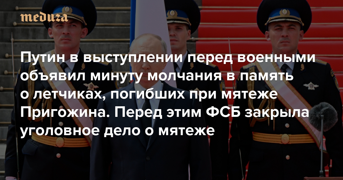 Путин в выступлении перед военными объявил минуту молчания в память о летчиках, погибших при мятеже Пригожина. Перед этим ФСБ закрыла уголовное дело о мятеже И да, президент опять не сказал, кто же организовал этот мятеж