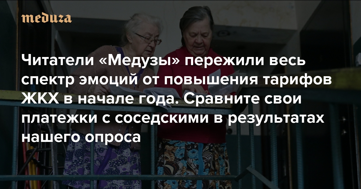 Удивился, ошалел, матерился, заплатил Читатели «Медузы» пережили весь спектр эмоций от повышения тарифов ЖКХ в начале года. Сравните свои платежки с соседскими в результатах нашего опроса