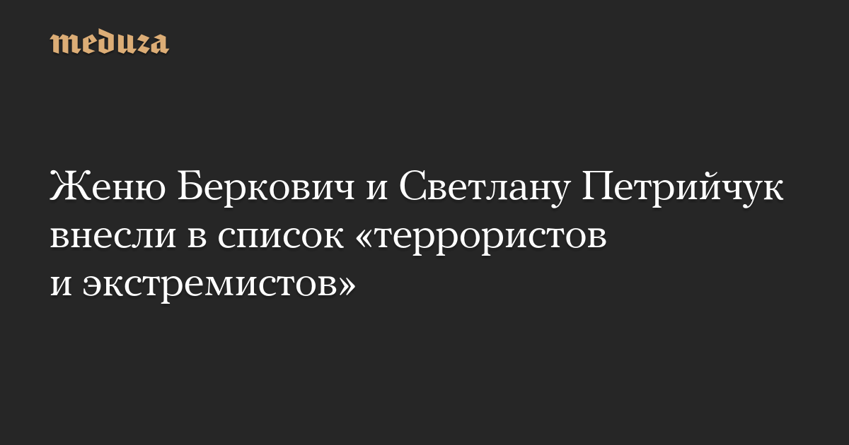 Женю Беркович и Светлану Петрийчук внесли в список «террористов и экстремистов»