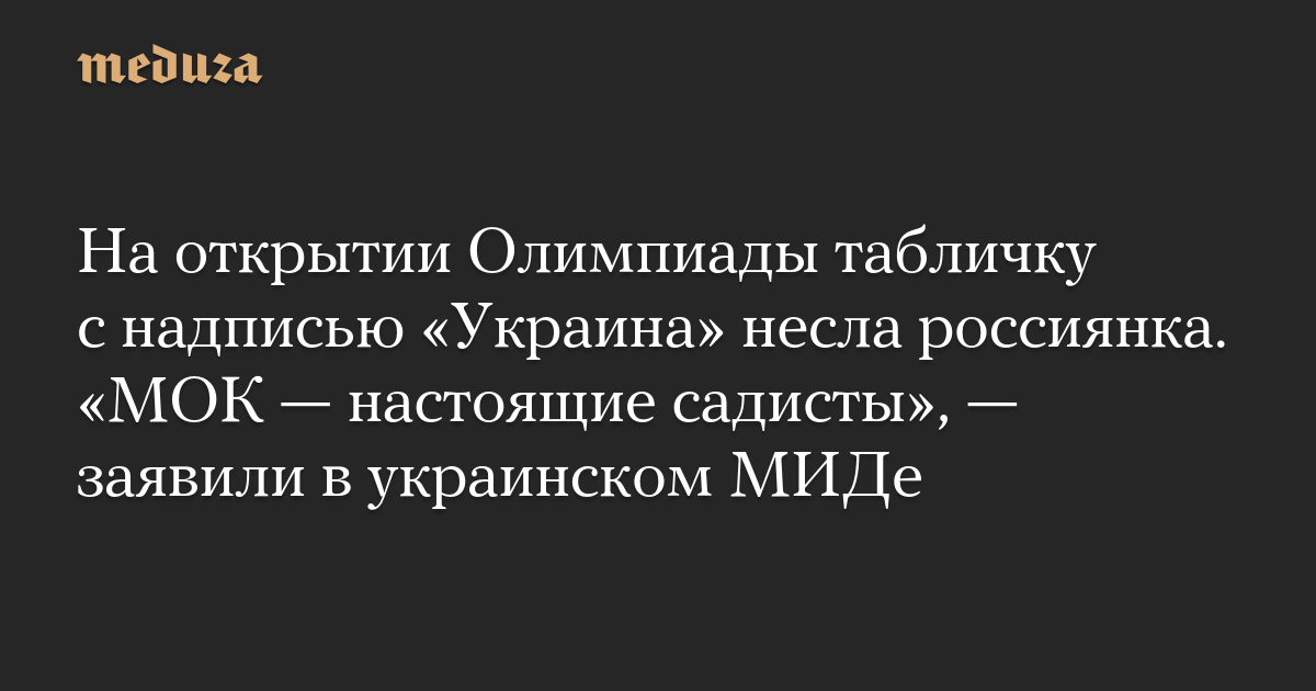 На открытии Олимпиады табличку с надписью «Украина» несла россиянка. «МОК — настоящие садисты», — заявили в украинском МИДе