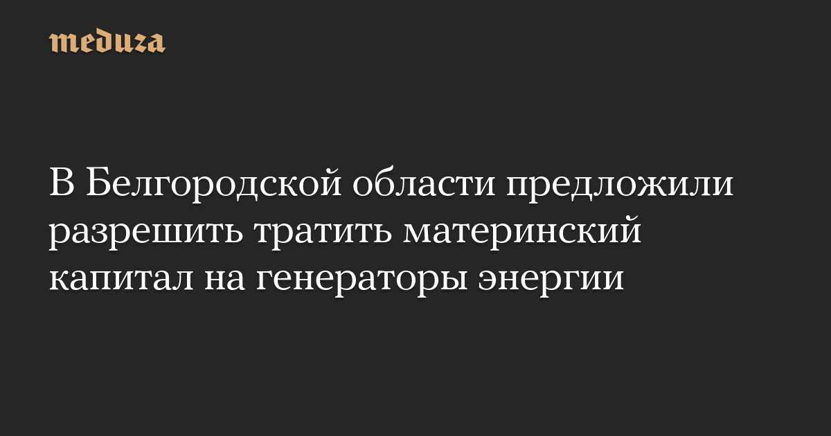 В Белгородской области предложили разрешить тратить материнский капитал на генераторы энергии