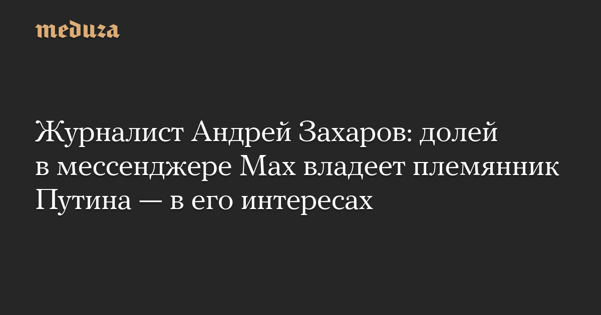 Журналист Андрей Захаров: долей в мессенджере Max владеет племянник Путина — в его интересах